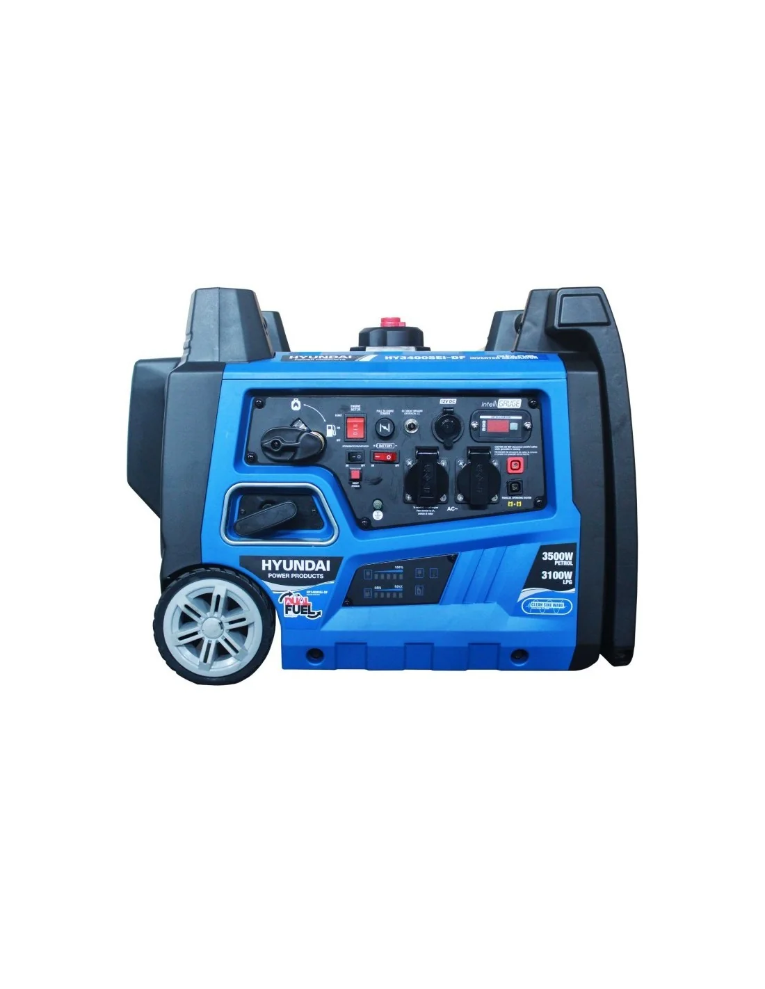 Generador Invérter Dual Fuel, GLP y Gasolina, monofásico 230 V, con una potencia máxima de 3500 w en gasolina y de 3150w en GLP
