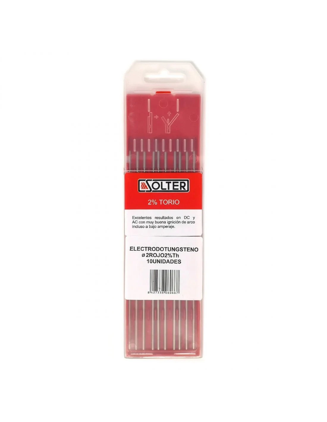 Electrodo de Tungsteno 2% Torio, color rojo Ø2mm. Para DC (corriente continua). Caja de 10 uds.