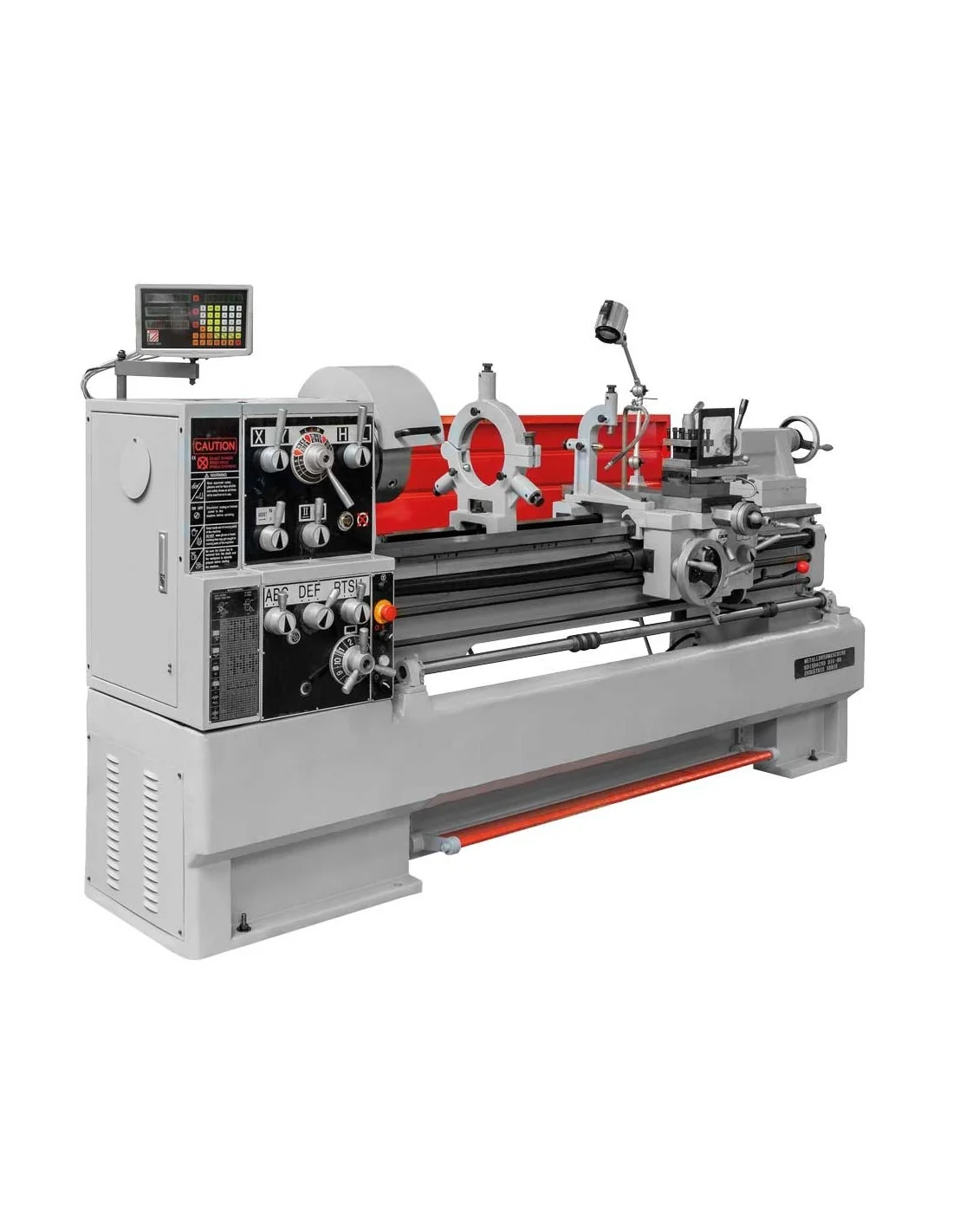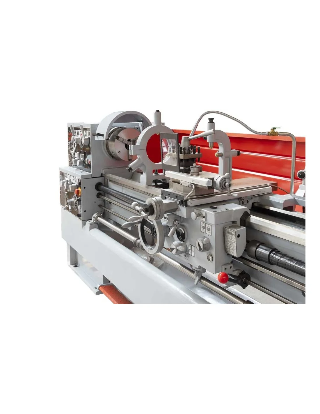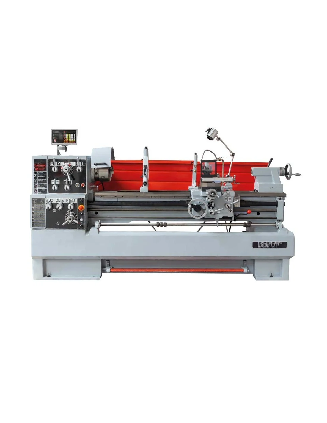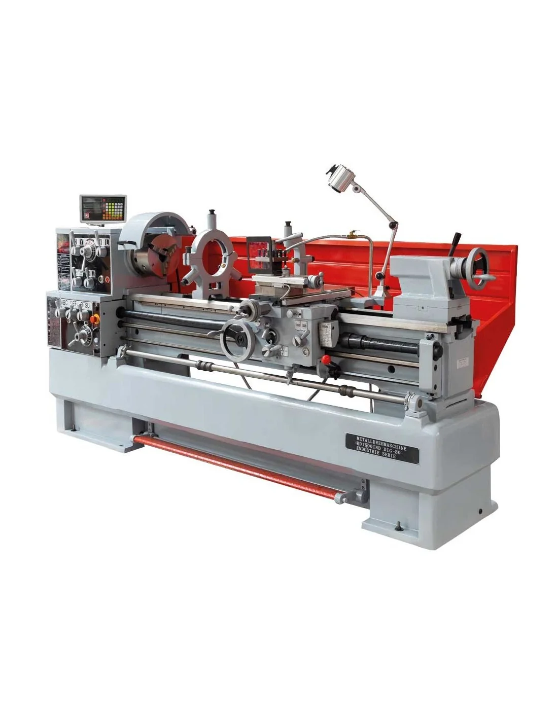 Material incluido: Posicionador digital 3 ejes, dispositivo de refrigeración, plato de 3 garras Ø 250mm, plato de 4 garras Ø 250mm, plato del husillo Ø 350mm, protector del husillo, base de la maquina montada luneta fija, 2 puntas fijas CM4, herramientas de montaje lámpara de trabajo halógena, torreta de 4 posiciones, freno de pie, bandeja trasera.