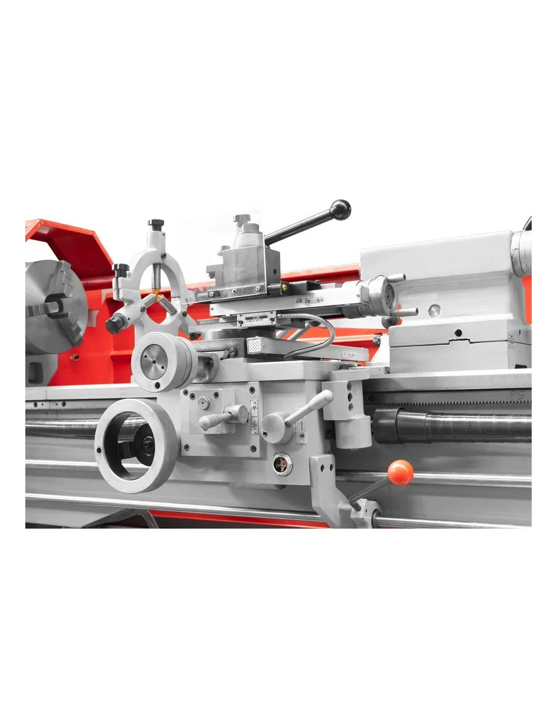 Material incluido: Posicionador digital para los 3 ejes, Dispositivo de refrigeración, plato de 3 garras Ø 200mm, plato de 4 garras Ø 250mm, plato del husillo Ø 250mm, protector del husillo, base de la maquina montada luneta fija, 2 puntas fijas CM4, Reducción de CM6 / CM4, herramientas de montaje, lámpara de trabajo halógena, torreta de 4 posiciones, freno electromecánico de pie.