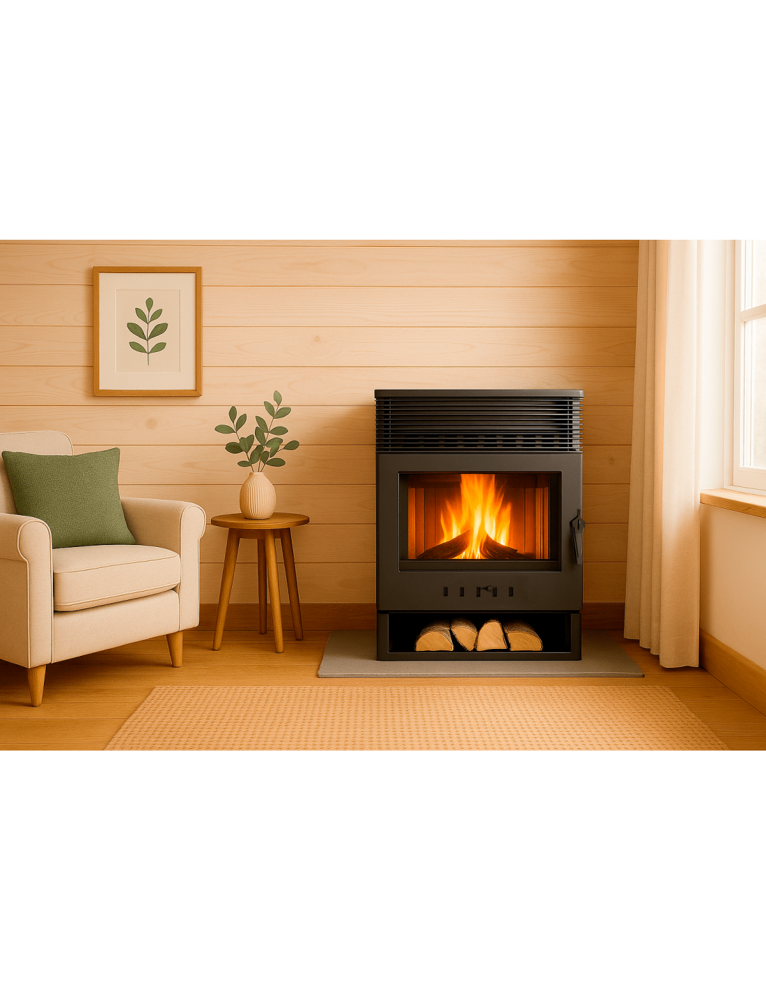 ESTUFA DE LEÑA PISANO VISIÓN VENTILADA de 8,64 kw de potencia global Eider Biomasa