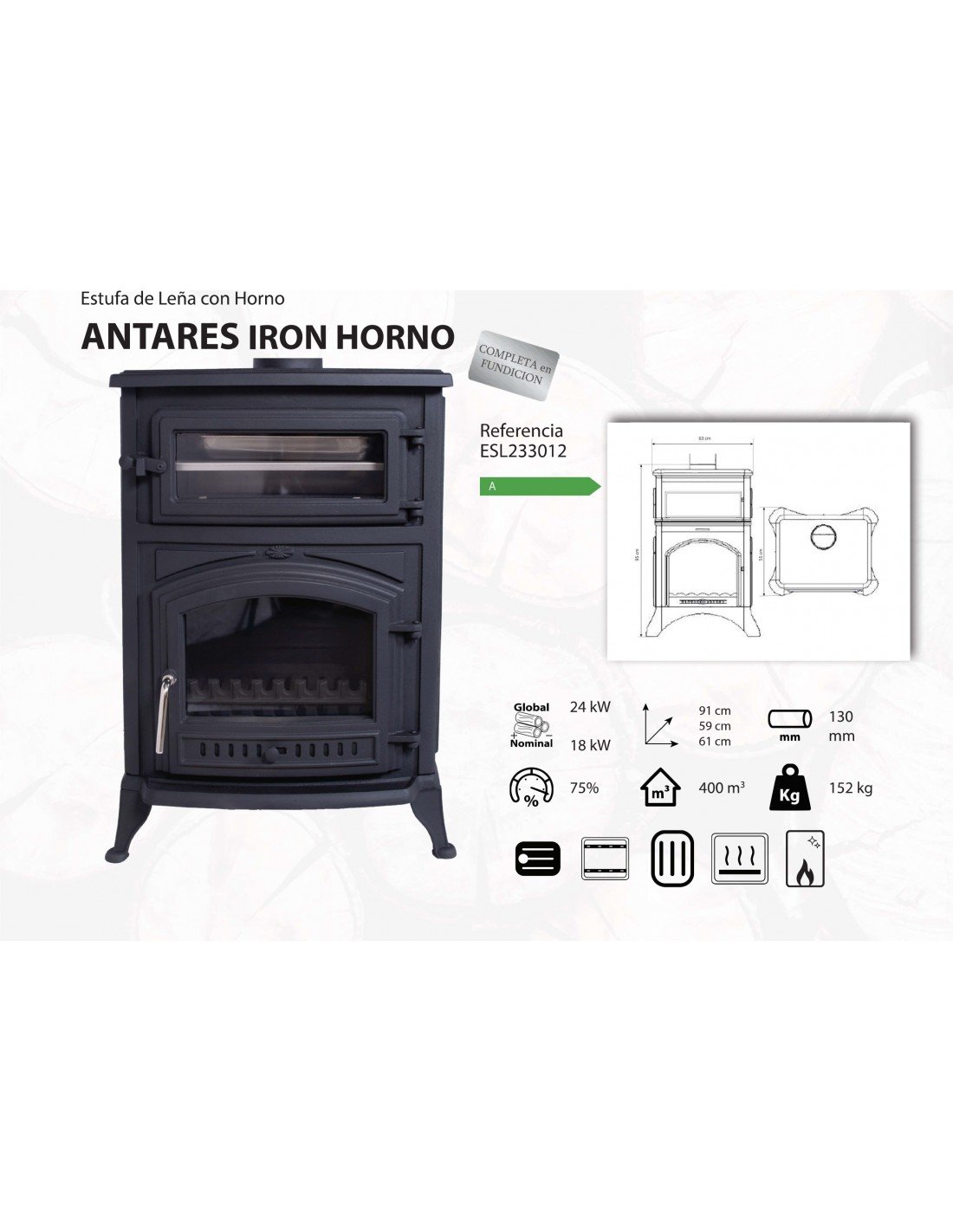 ESTUFA DE LEÑA CON HORNO FUNDICION 24Kw Hierro fundido