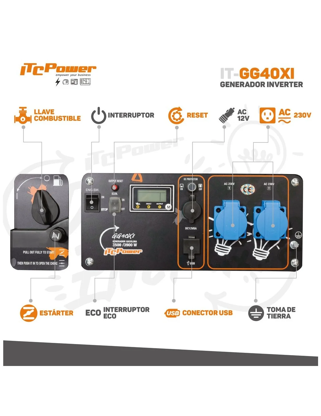 IT-GG40XI Generador Inverter Gasolina Abierto 3,9kW ITCPower