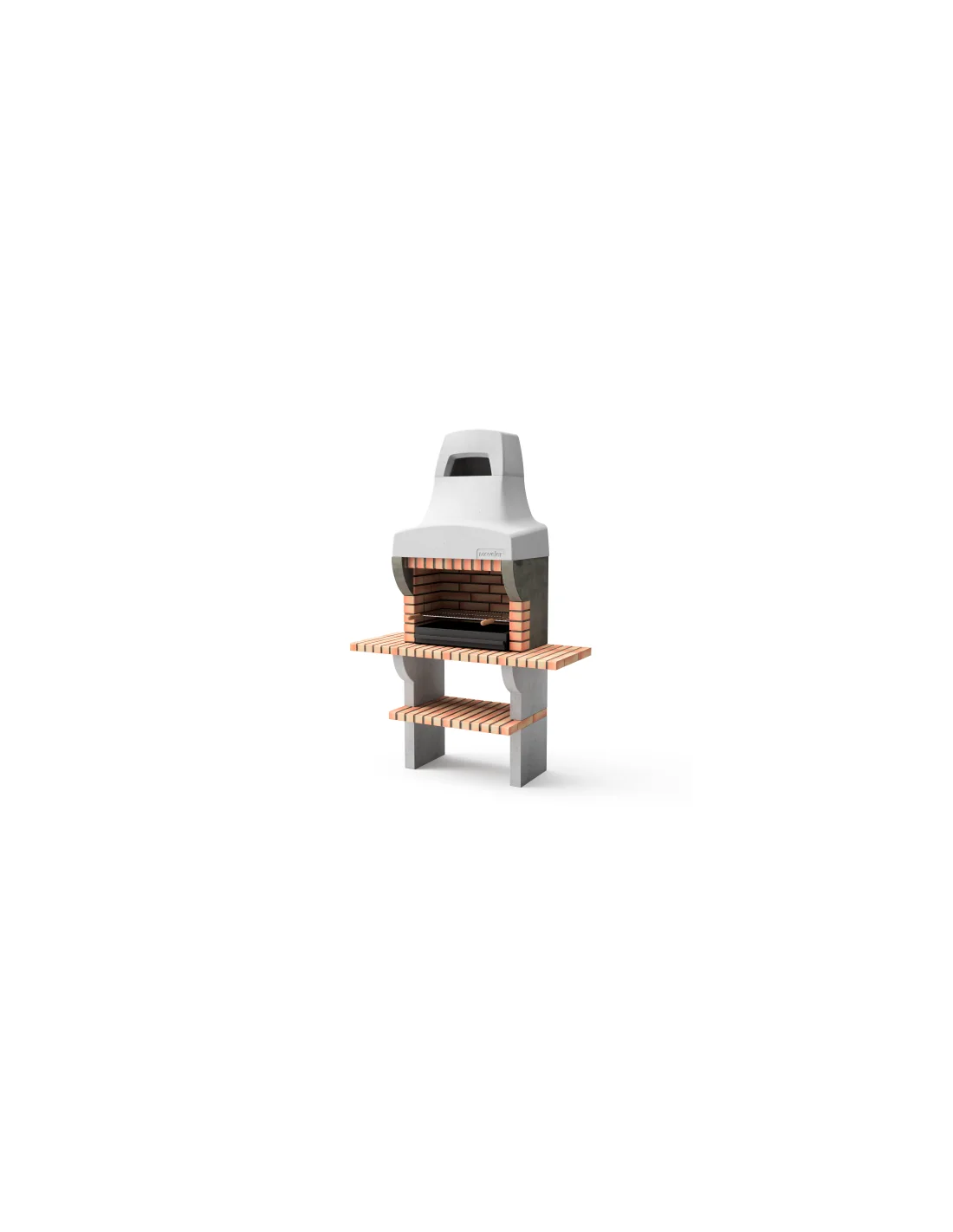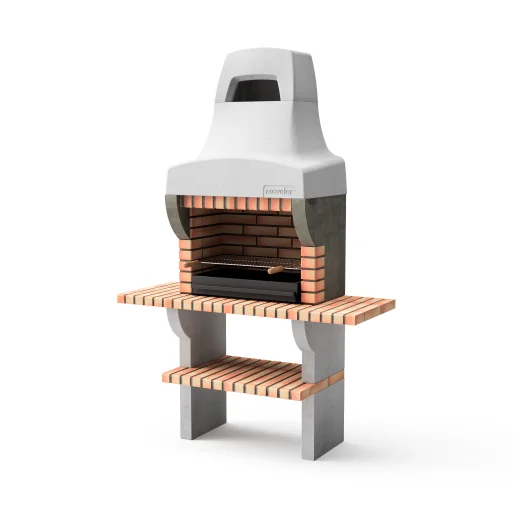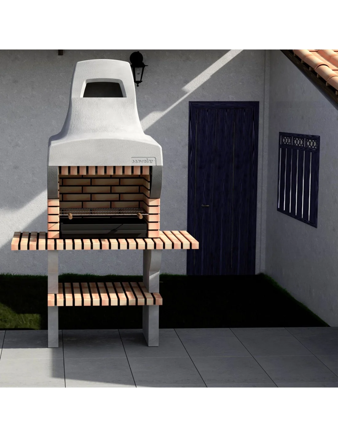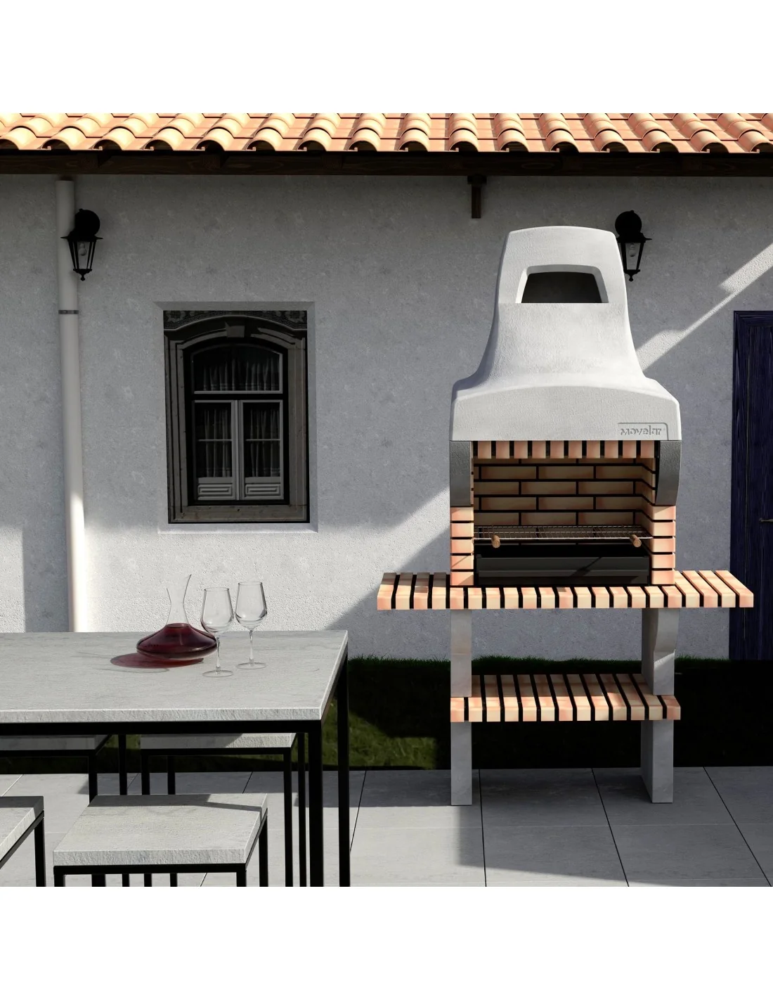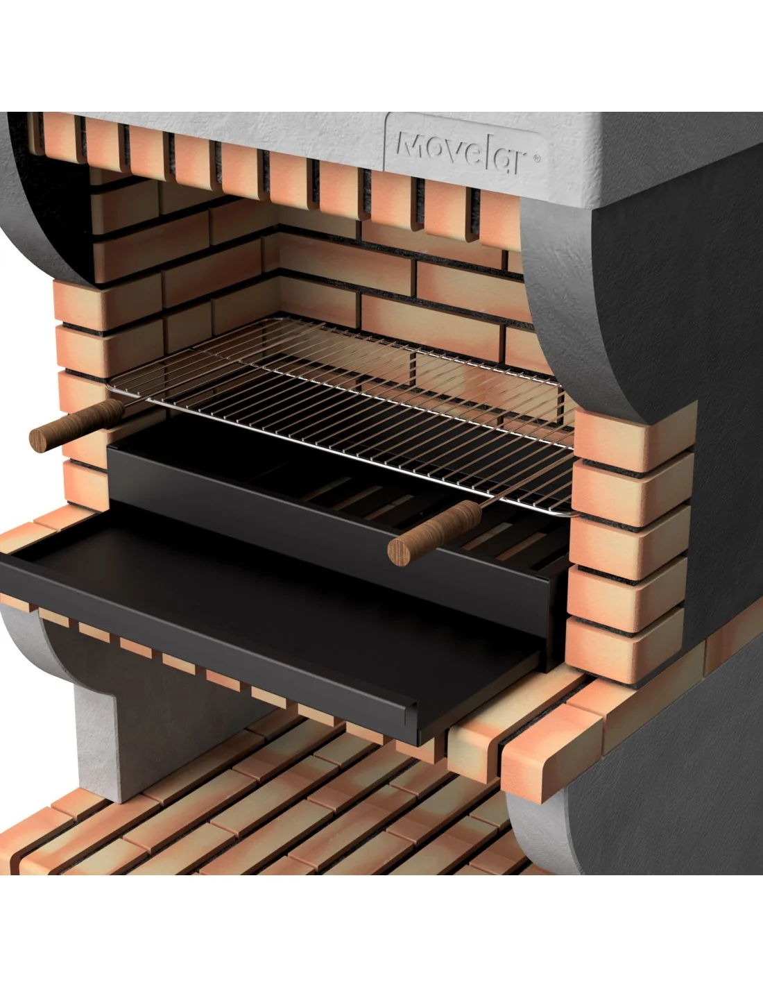 Barbacoa Bailen en ladrillo naranja y hormigón con 2 mini bancadas y con cajón
