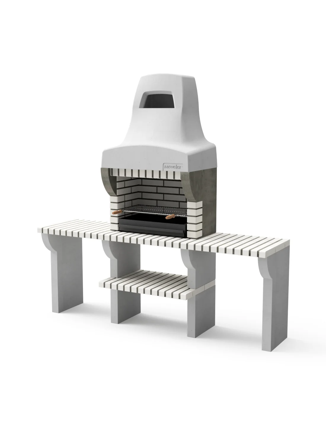 Barbacoa Bailen Plus en ladrillo y hormigón con 2 bancadas