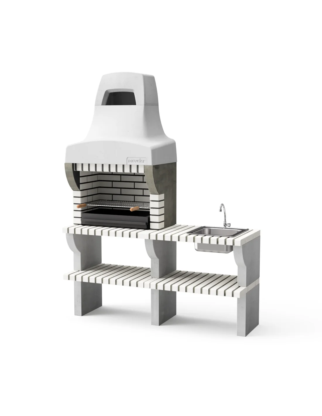 Barbacoa Bailen Plus en ladrillo y hormigón con bancada y fregadero