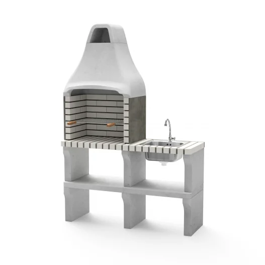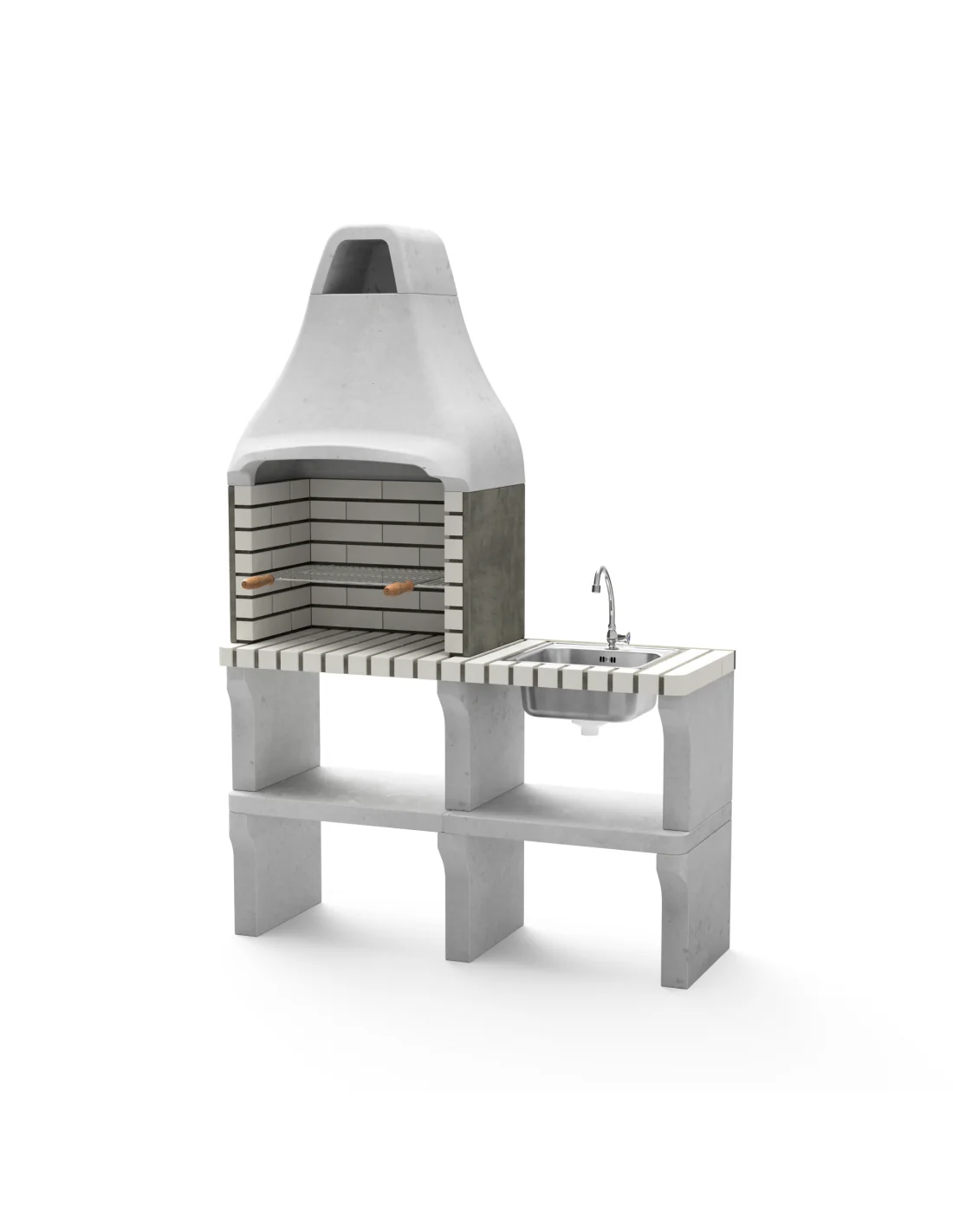 Barbacoa New Iberia en ladrillo blanco y hormigón con bancada y fregadero