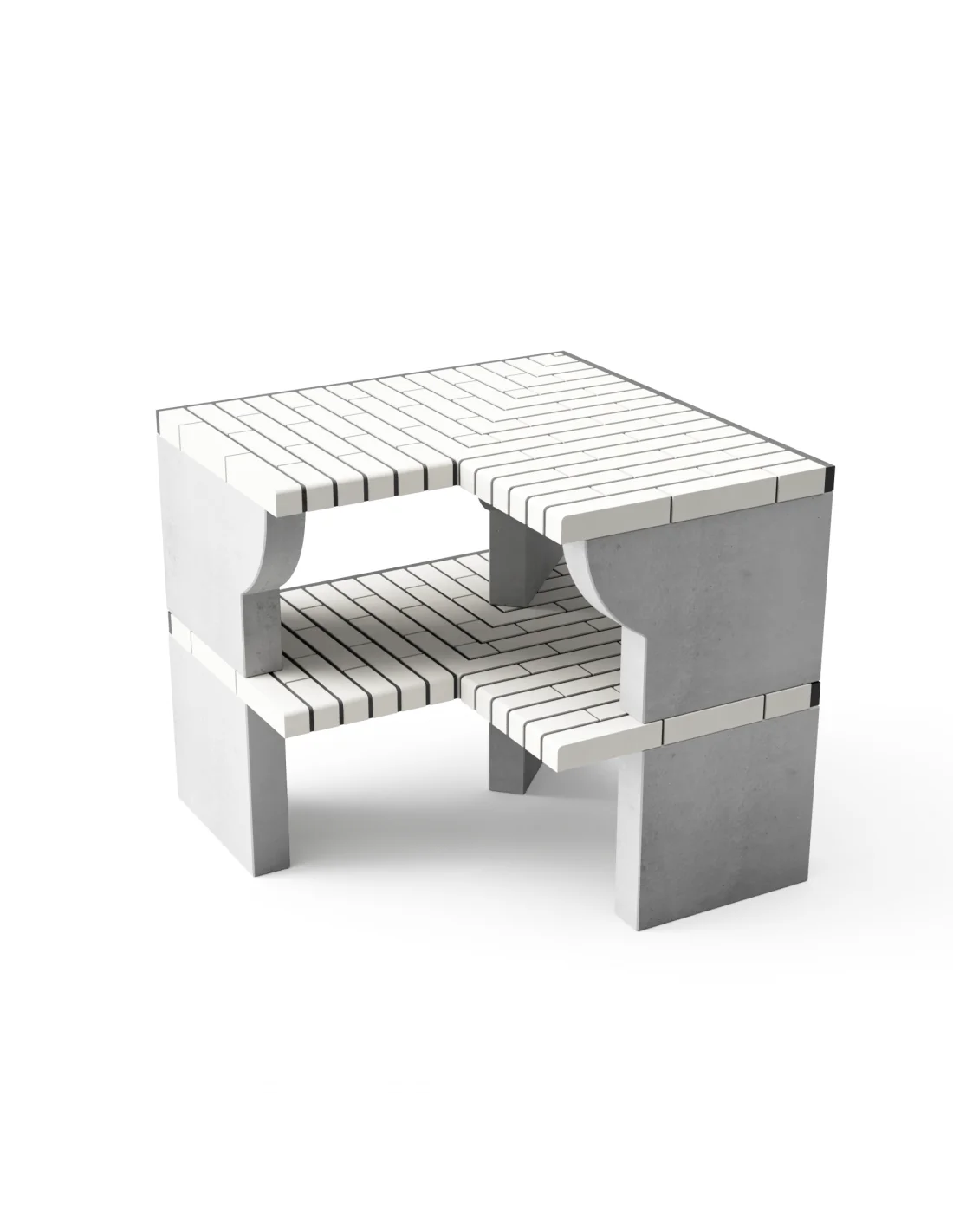 Modulo bancada de esquina Bailen en ladrillo blanco y hormigón