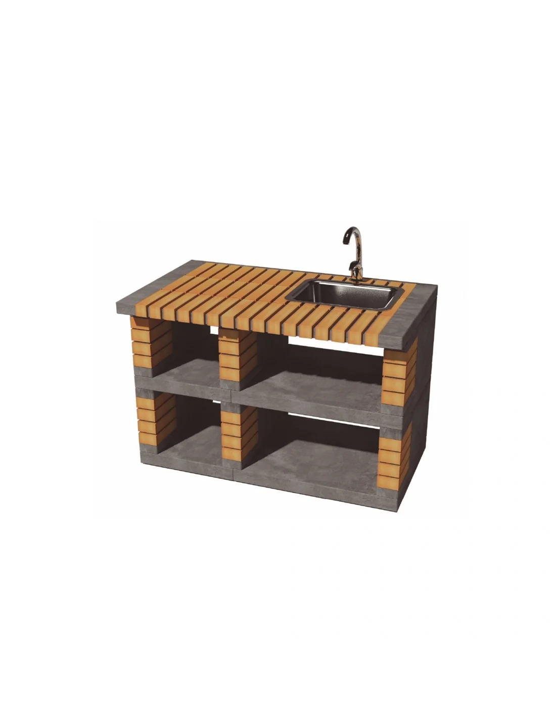 Modulo Bancada fregadero Pan American en ladrillo blanco y hormigón