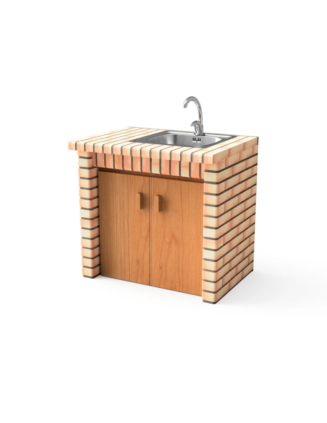 Modulo Bancada fregadero Pan American en ladrillo naranja y hormigón