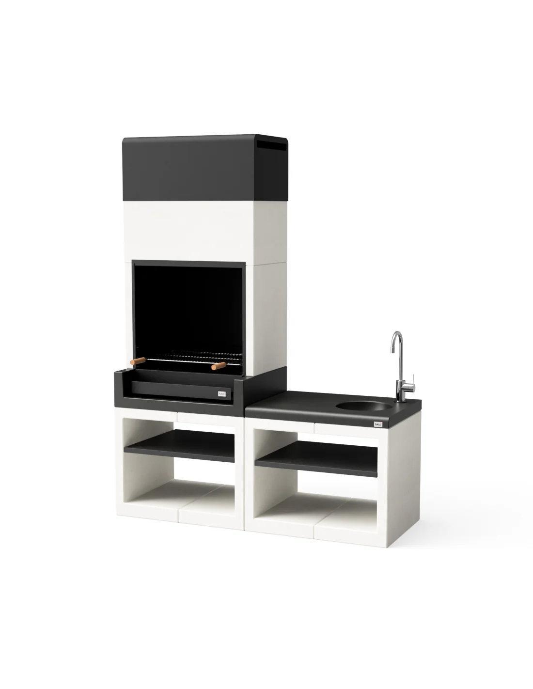 Cocina exterior set de Barbacoa Kitaway + Bancada Fregadero Hormigón Liso Blanco y Negro