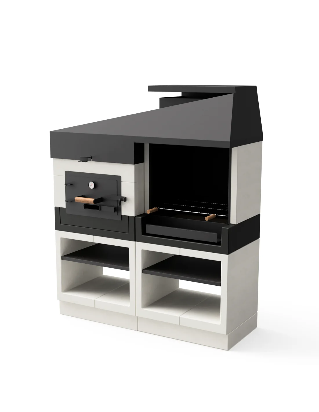 Cocina exterior set de Barbacoa Kitaway + Horno en Blanco y Negro con rodape