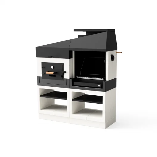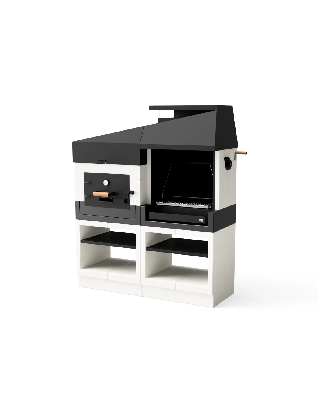 Cocina exterior set de Barbacoa Kitaway Otte Argentina + Horno Blanco y Negro con rodape