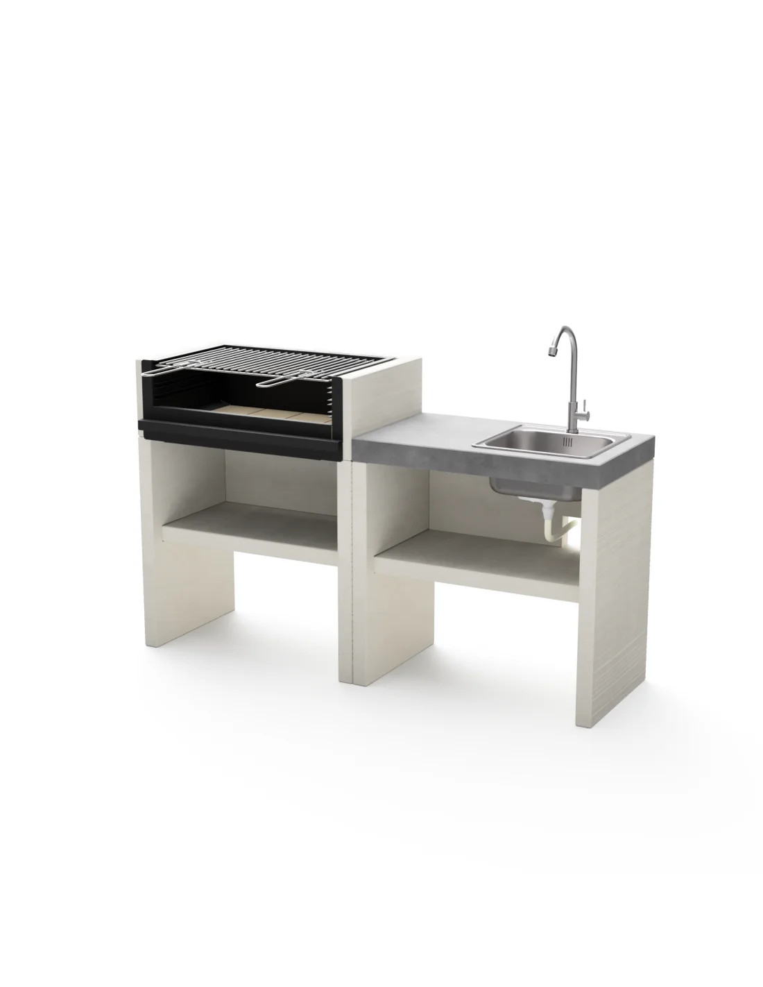 Cocina exterior set de Barbacoa Venit Flex 78 cm Carbon y Leña + Bancada fregadero 78 cm