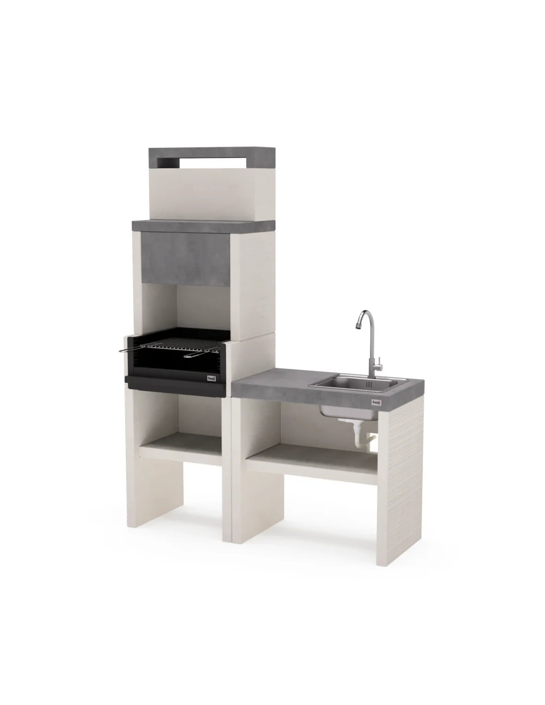 Cocina exterior set de Barbacoa Venit Flex Plus Hotte Carbon y Leña 59 cm + Bancada fregadero 78 cm