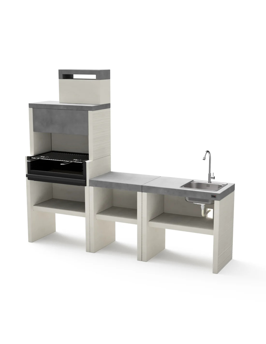 Cocina exterior set de Barbacoa Venit Flex Plus Hotte Carbon y Leña 78 cm + Bancada 59 cm + Bancada fregadero 78 cm