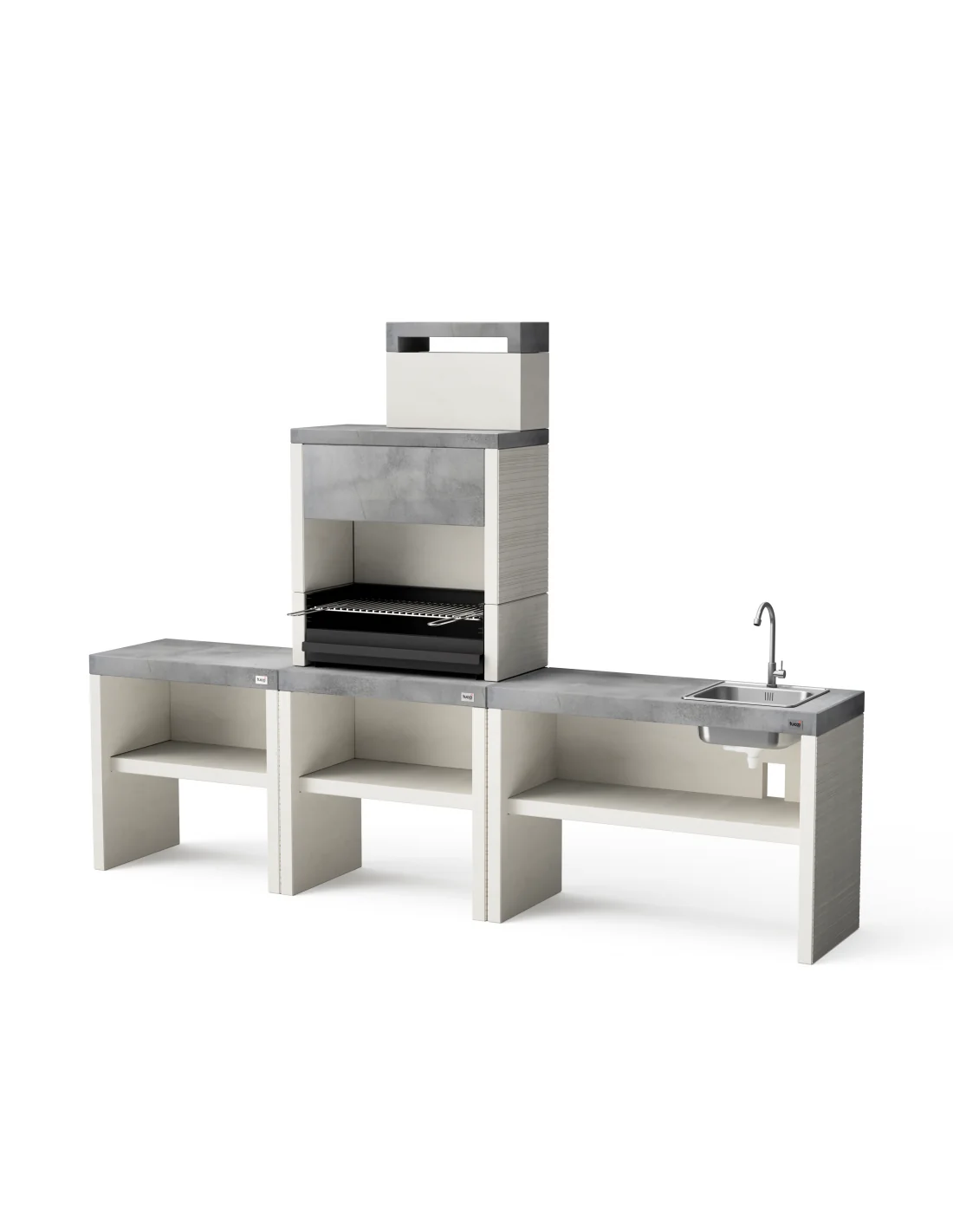 Cocina exterior set de Plan 1 Full Leña y Carbon 78 cm + Modulo Bancada Placa Gás Teka 78 cm + Modulo Fregadero 110 cm