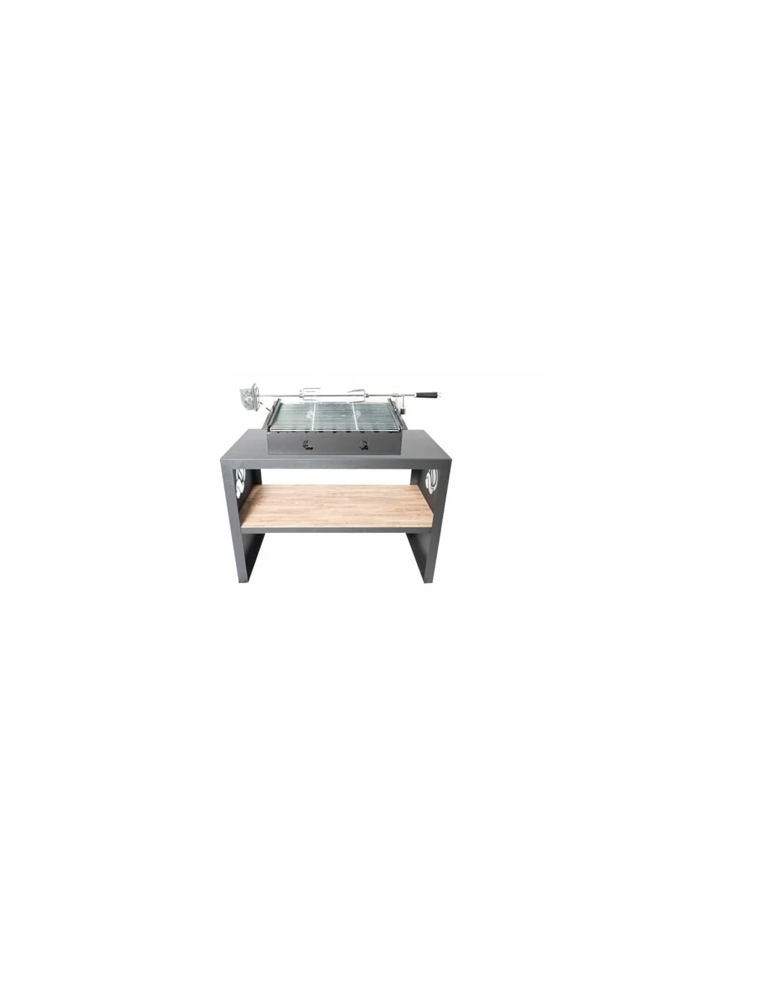 Júpiter 2 + carbonera / giratoria, es una barbacoa de carbón desmontable con una gran zona de trabajo en su mesa y a la vez, sencilla, práctica y funcional. Incluye la mesa, más la carbonera y el giratorio. *Requiere un fácil montaje, el cual está especificado en las instrucciones adjuntas al producto.