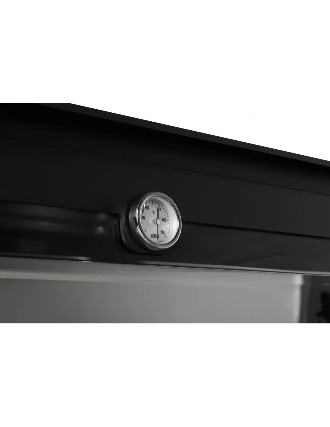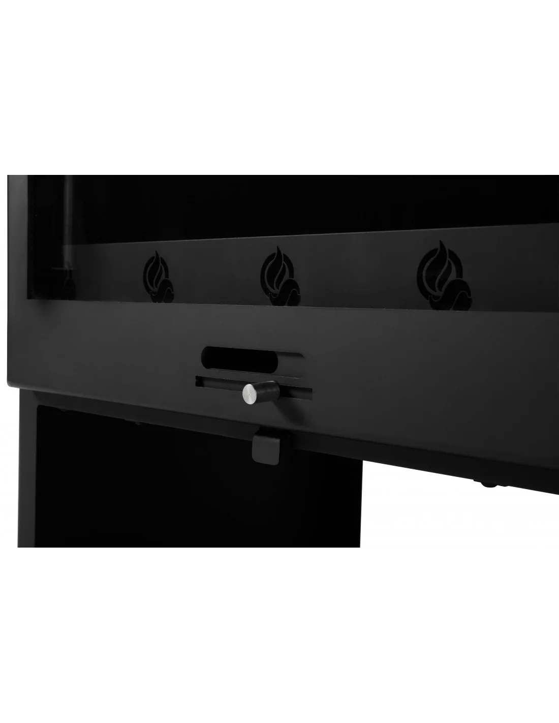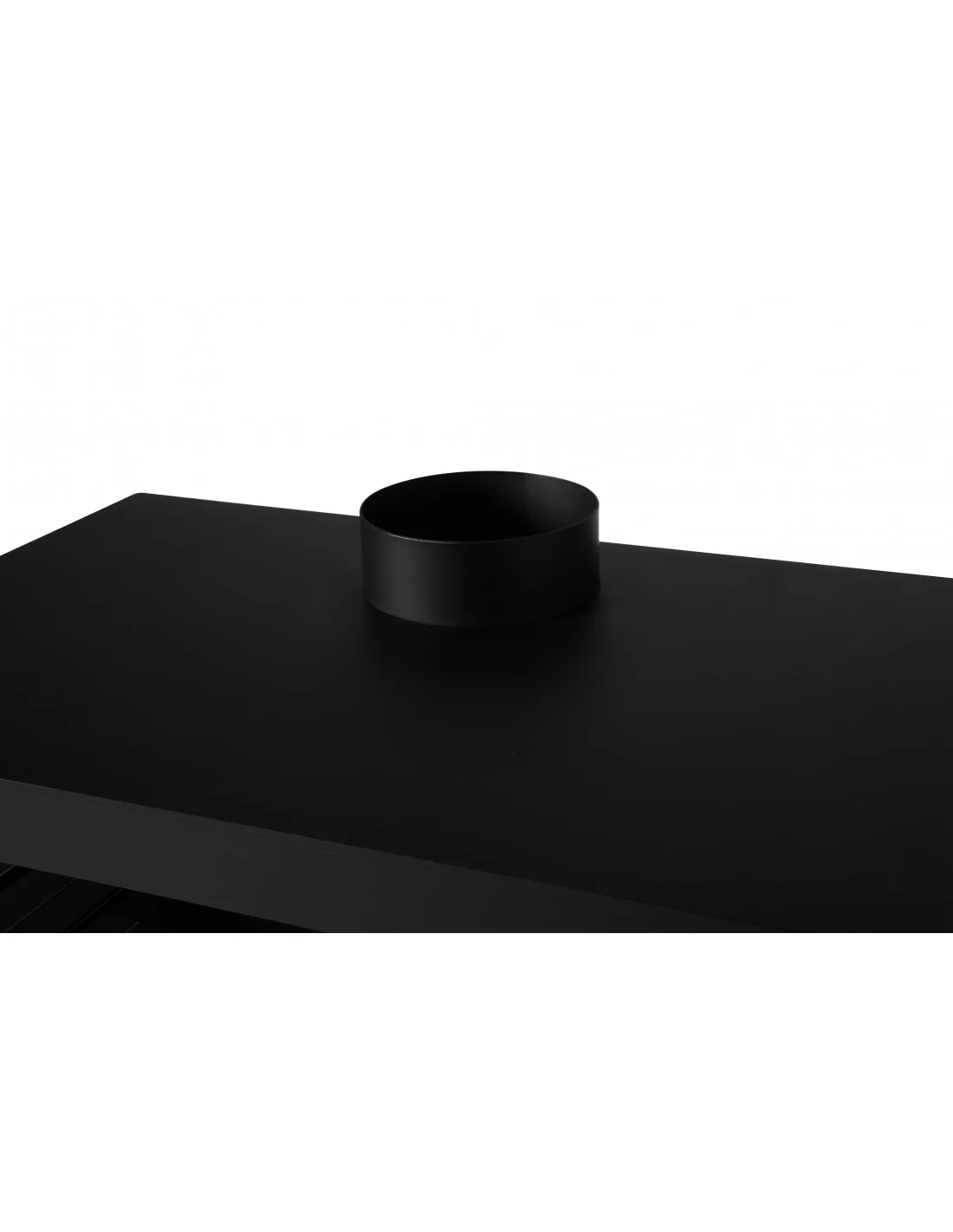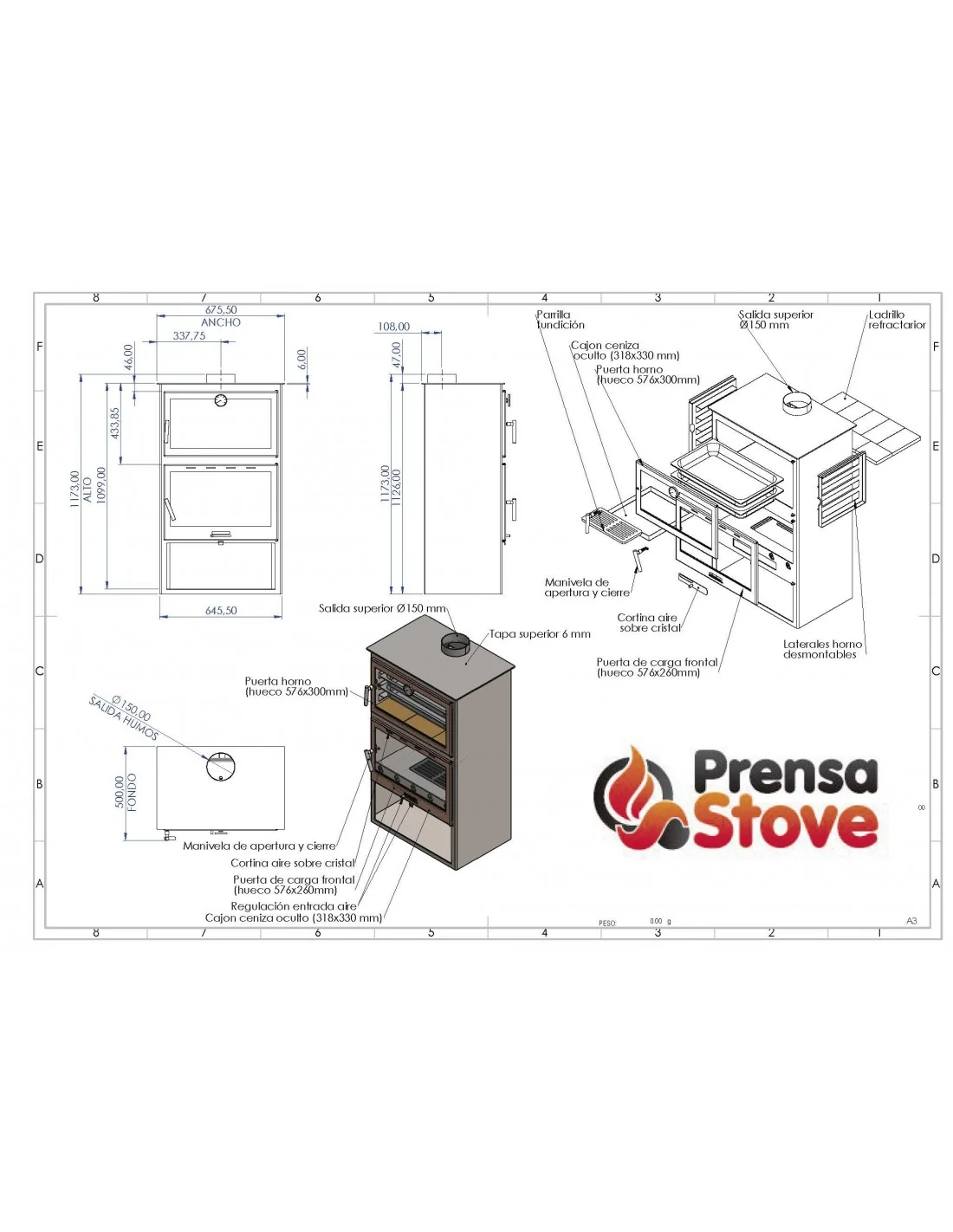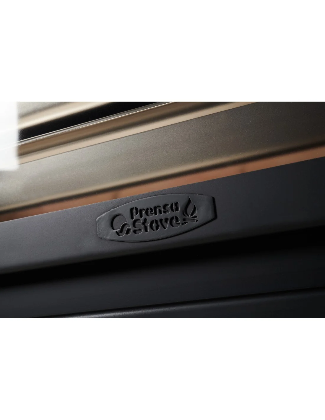 La estufa Grosa 2 es una estufa de diseño contemporáneo y funcional. Está construido en chapa de acero de 4mm de color negro y tiene una puerta frontal de vidrio que permite visualizar el fuego en su interior. Cuenta con un horno muy amplio. La estructura es rectangular y se apoya sobre una base rectangular hueca, que le proporciona estabilidad y un diseño elegante para almacenar leña . En la parte superior cuenta con una salida de humo para la correcta ventilación. El diseño de la estufa Grosa 2 combina líneas simples y modernas, lo que la hace adecuada para una variedad de estilos de interiores, desde rústicos hasta modernos.