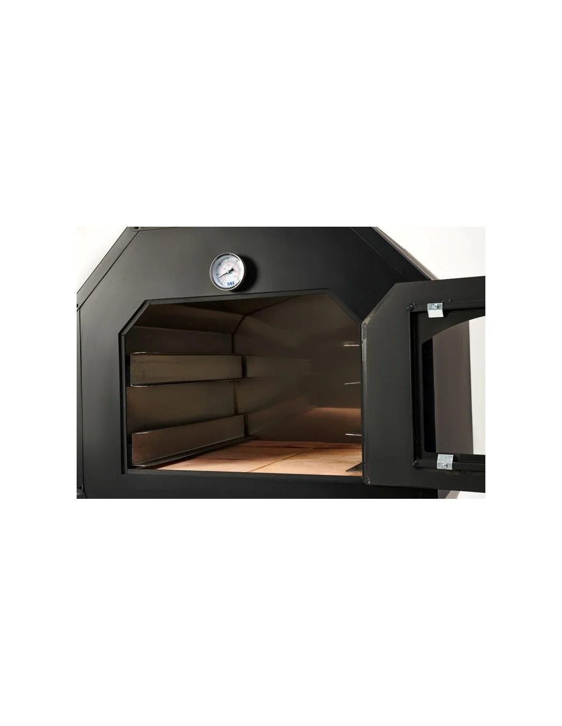Horno de leña Garden Arrecife 1, está diseñado para la instalación exenta, sus medidas son ancho 67 cm x alto 100 x fondo 58 cm con chapa acero de 4mm e interior inox. Cuenta con cajón recoge cenizas cómodas para su extracción, así como gancho atizador.