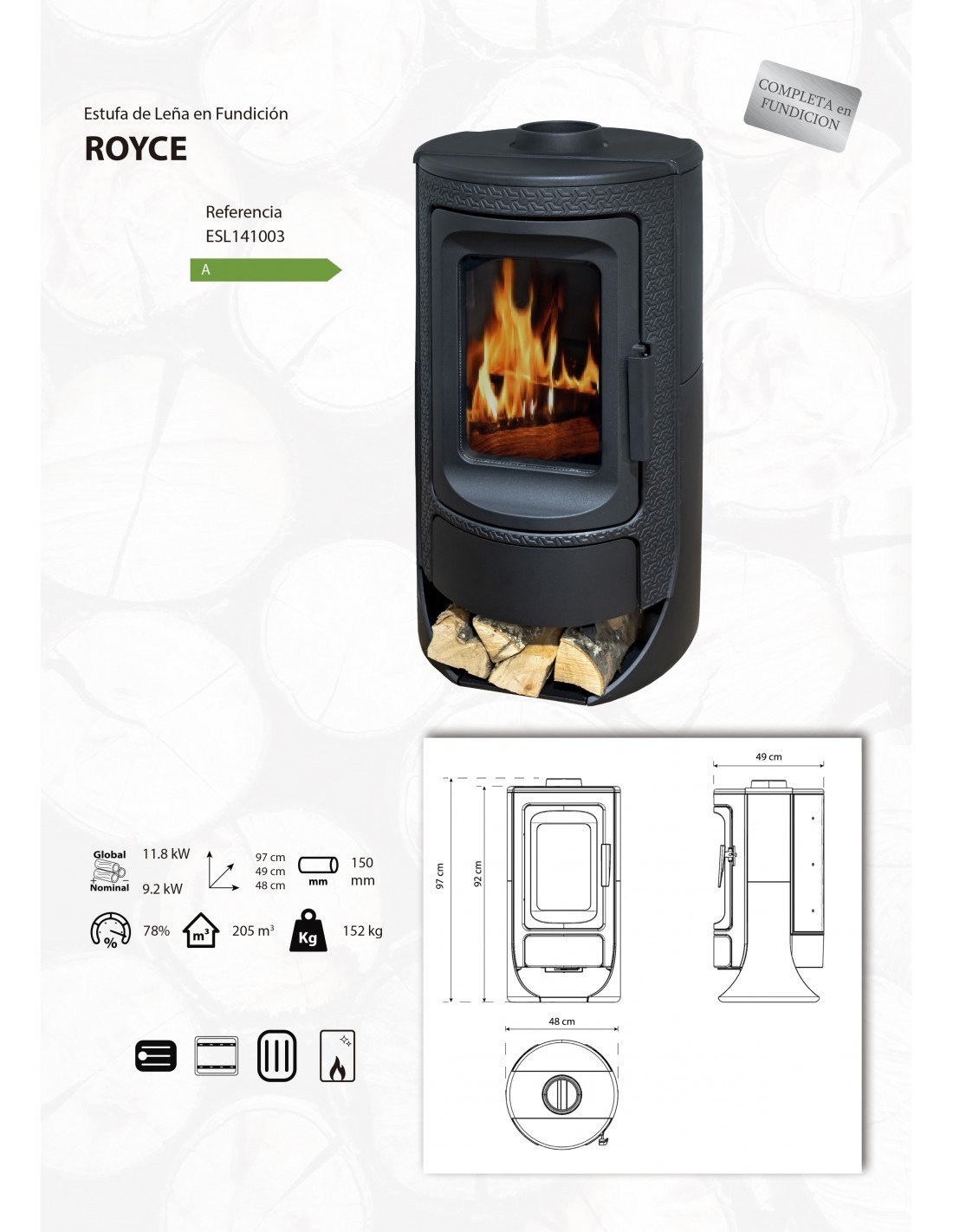 Estufa de leña fundición ROYCE 11,8kw Hierro fundido