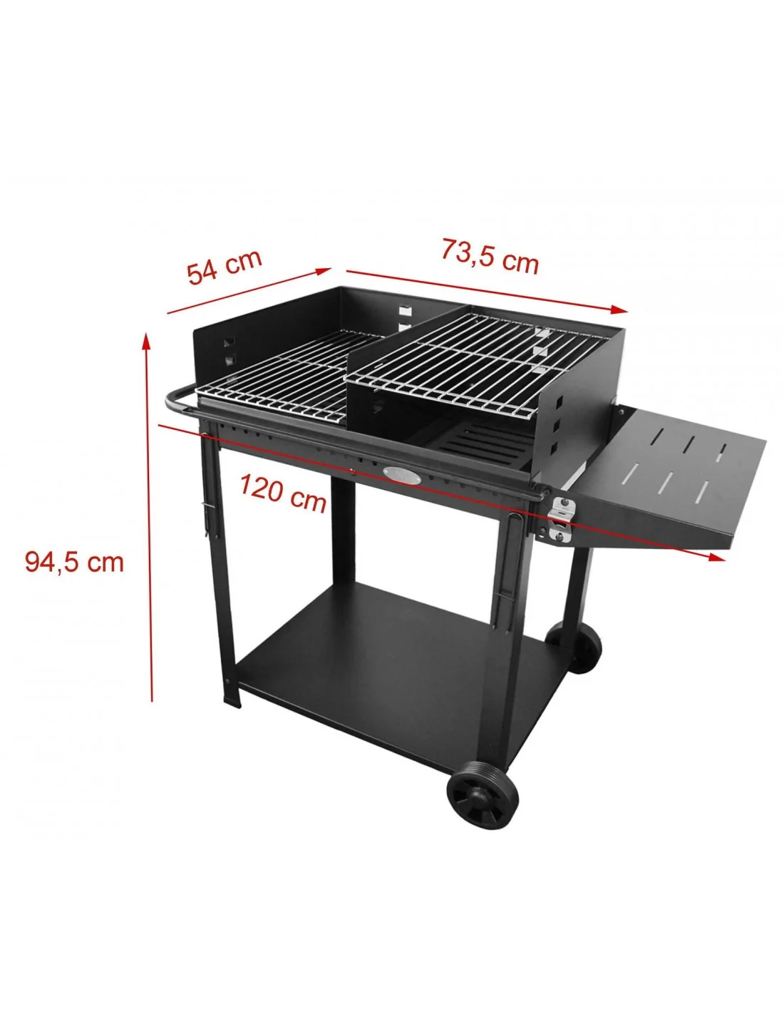 - Las dimensiones de la barbacoa son 120 cm de ancho x 54 cm de fondo x 94,5 cm de alto.