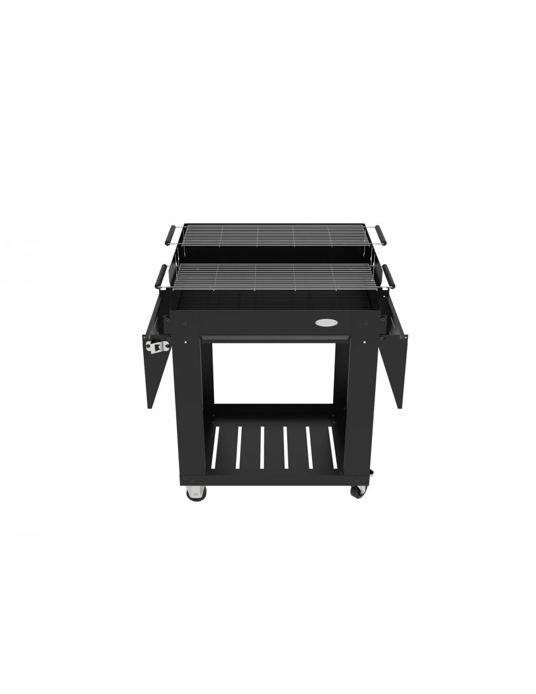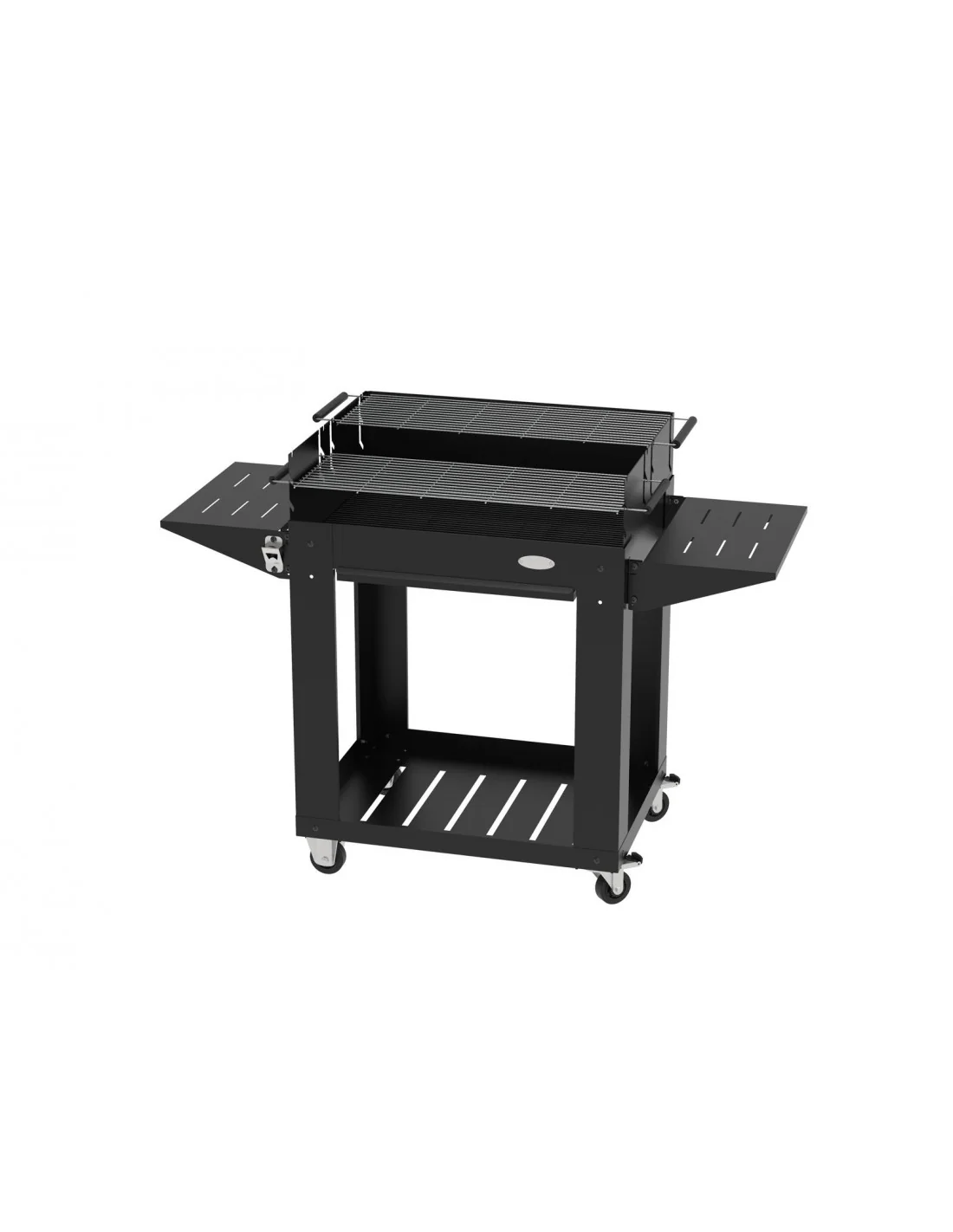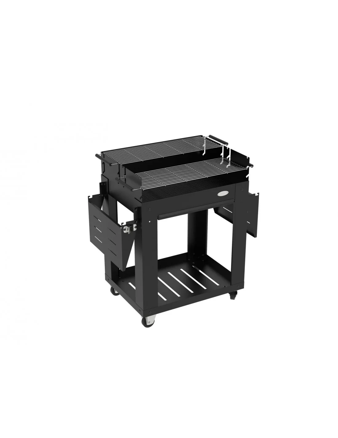 - Barbacoa con parrilla regulable para carbón con estantes laterales y ruedas modelo Rodeo IMOR®.
