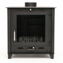 La estufa Ralph está fabricada en chapa de 3 mm, lo que le otorga resistencia y durabilidad. Incluye un cajón recoge cenizas, un gancho atizador, una amplia parrilla de hierro fundido, y tiradores y pomos en acero inoxidable, ofreciendo gran funcionalidad y facilidad de uso.